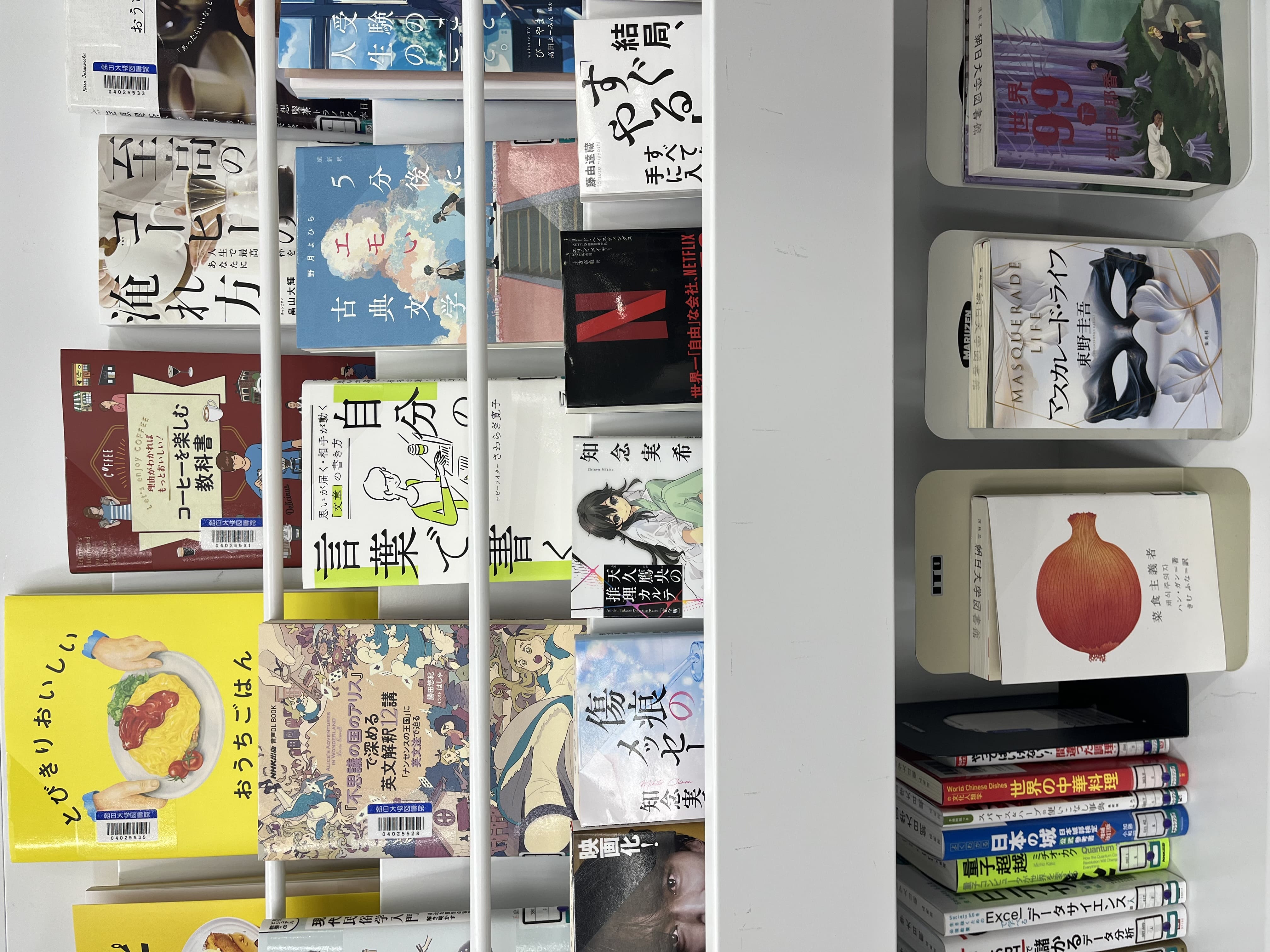 8月2日(土)に丸善名古屋本店にて学生選書ツアーを開催しました。ベストセラーや韓国文学、ビジネス書、さらに画集やレシピ本まで、幅広いジャンルの本を選んでもらいました。選ばれた本は、参加学生のおすすめコメントを添えて図書館分室と本館で巡回展示しています。貸出可能ですので、ぜひ気になる1冊を探してみてください。選書一覧は図書館ホームページで公開しています。カテゴリ検索「学生選書一覧」 お知らせ