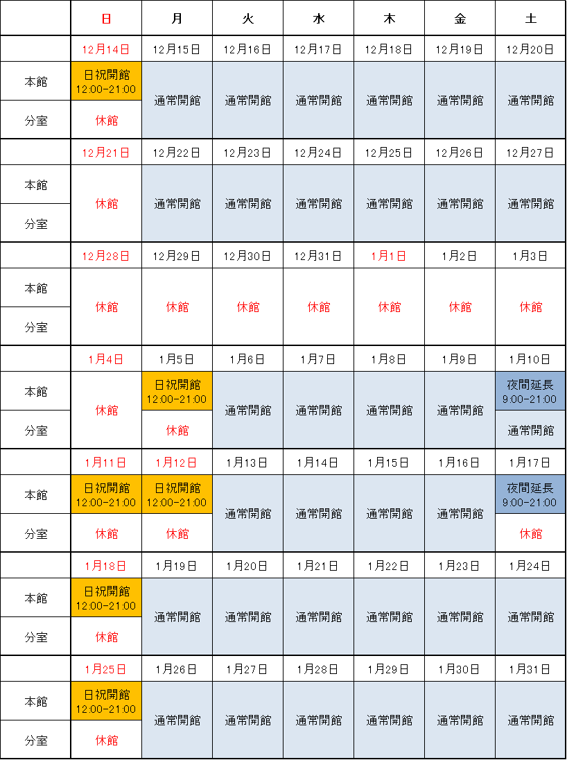 学生冬季休業特別貸出及び年末年始の開館について(お知らせ)